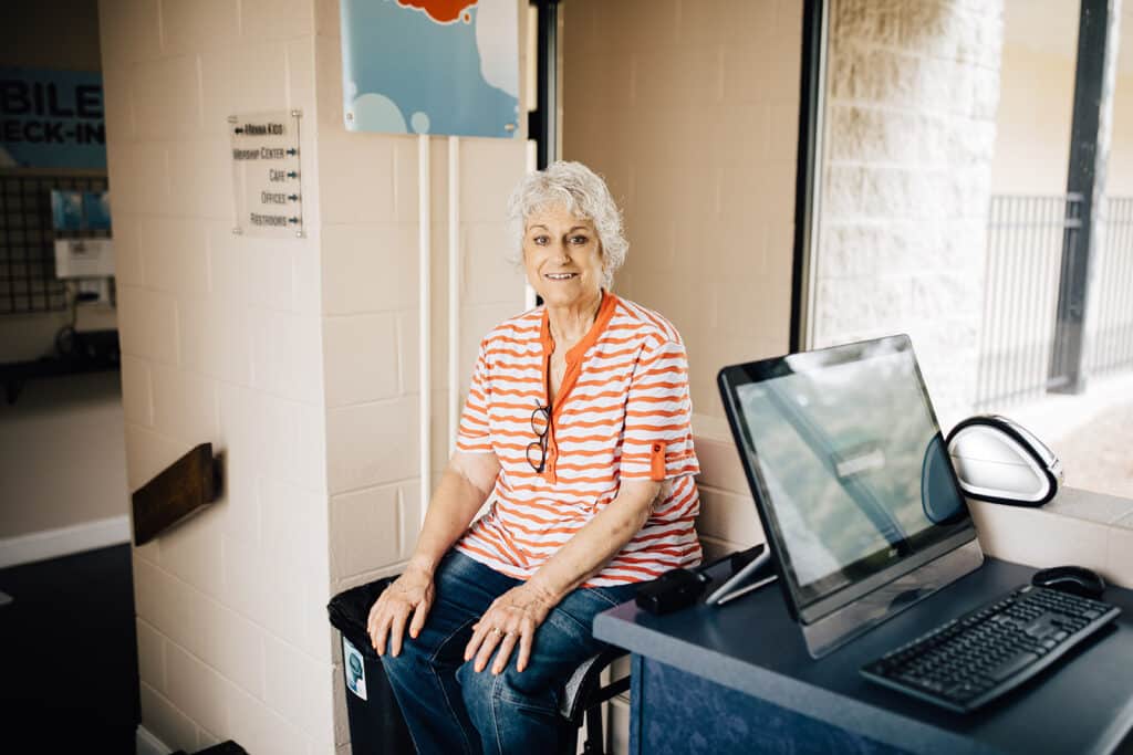 Upon arrival, find guest parking by the front entrance and additional parking in the paved or gravel lots. Head to the front entrance, where a member of our Guest Services team will greet you. Grab a cup of coffee, find a seat in the Worship Center, there will be a 5-minute countdown before the music begins.